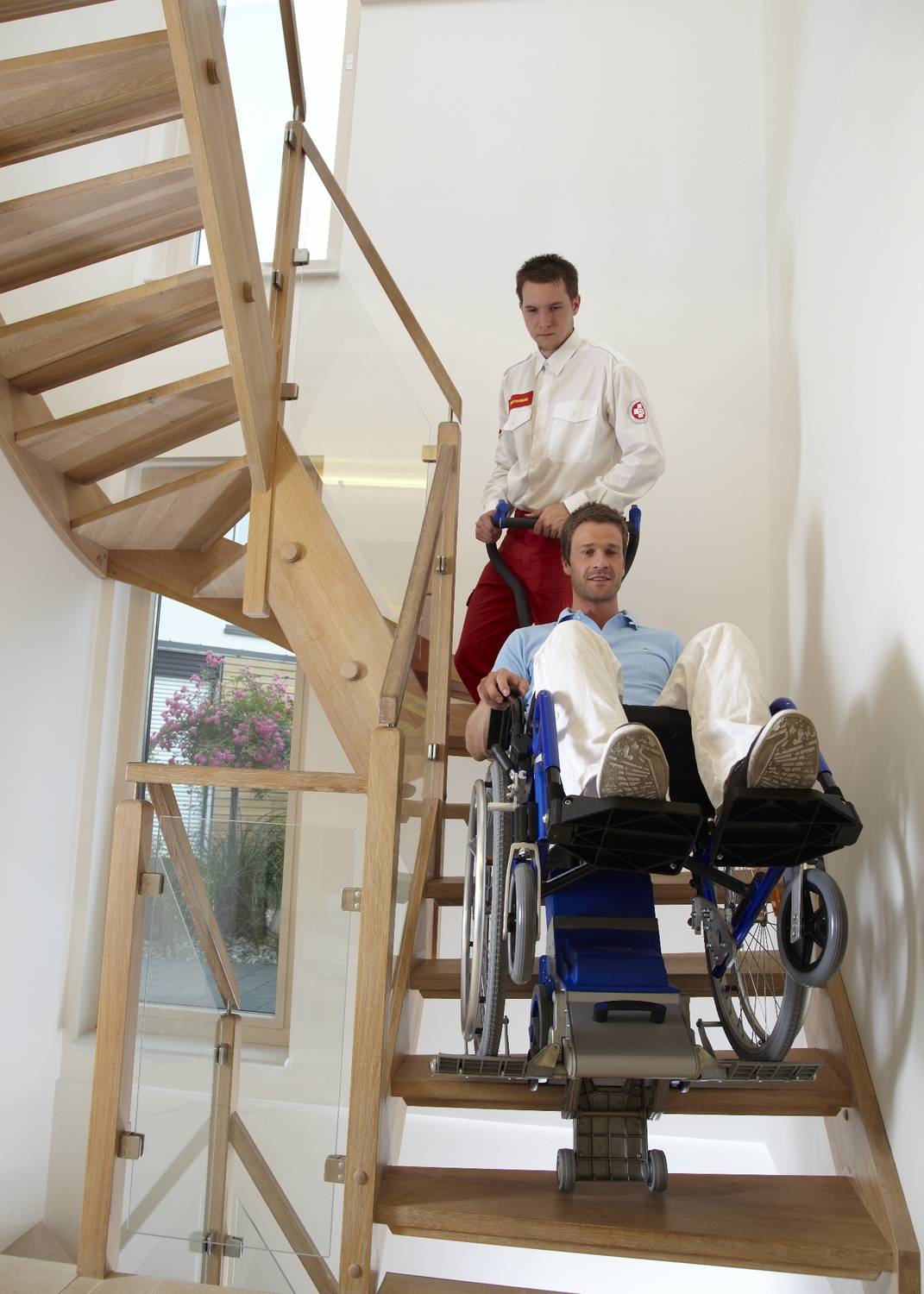 Ces monte-escaliers sont capables de franchir des escaliers droits ou tournants, ils sont facilement démontables et peuvent être transportés dans une voiture pour se rendre d'un site à un autre.